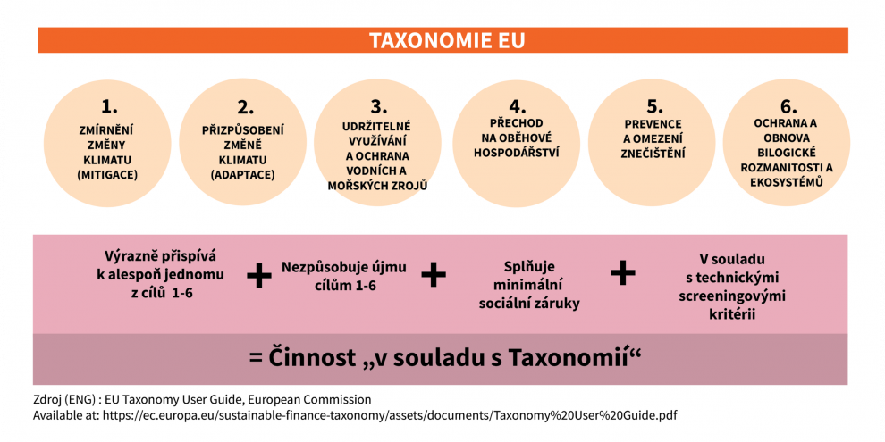 Informace o Taxonomii EU od Ministerstva Financí ČR https://mf.gov.cz/cs/ministerstvo/financovani-udrzitelnosti/ramec-eu-pro-financovani-udrzitelnosti/taxonomie-eu
