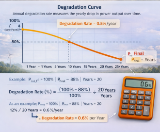 Degradation rate (%/year) ≈ ((P₀ − Pₙ) / P₀) ÷ n × 100